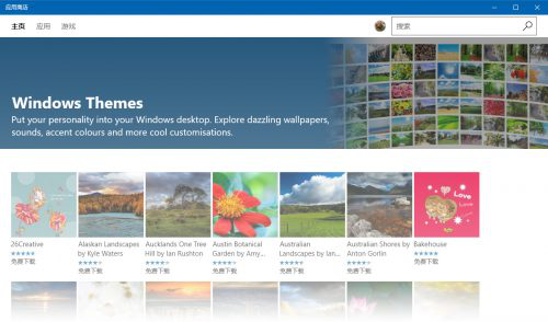 使用Win10系統(tǒng)的用戶越來越多,在Win10創(chuàng)意者更新中提供了主題的更換和下載,可能有用戶還不是很清楚。微軟現(xiàn)在除了每日更新的Bing 美圖、鎖屏聚焦壁紙外,Windows 10創(chuàng)意者(1703版)的Windows商店也提供了數(shù)種主題壁紙可供選擇。