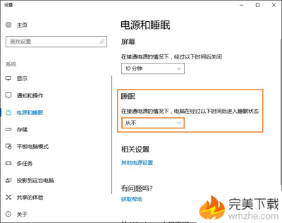 3、搜索 電源和睡眠,睡眠-》從不,電腦睡眠會使遠程桌面斷開。