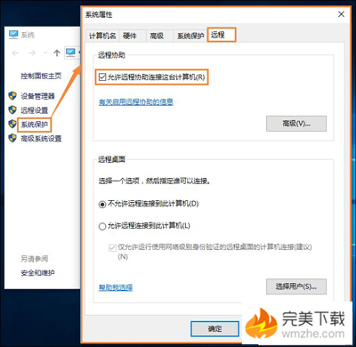 1、右鍵此電腦選擇屬性,在點擊系統(tǒng)保護 -》 遠程-》 允許遠程桌面;