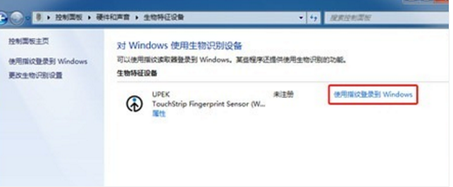 在所使用的生物特征設備后面選擇“使用指紋登錄到 Windows”,點擊確定。