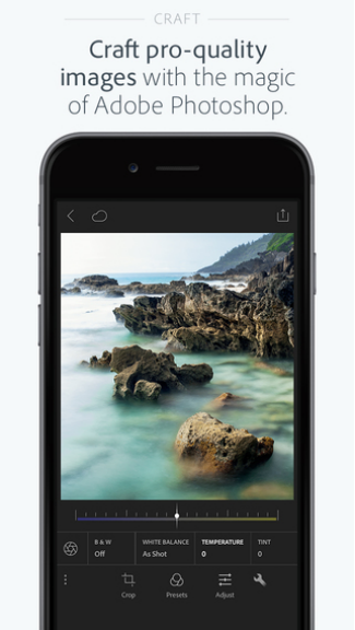 Lightroom Mobile 移動(dòng)版提供了比較完善的照片編輯功能,如裁剪、調(diào)整白平衡、曝光、色溫、光暗、陰影、飽和度等等,也提供了多款濾鏡特效供用戶選擇。當(dāng)然,移動(dòng)版功能上相比桌面版功能會(huì)有一些精簡(jiǎn),但對(duì)于經(jīng)常出門在外的專業(yè)攝影師或業(yè)余愛(ài)好者,用手機(jī)或iPad的 Lightroom 做后期調(diào)調(diào)色馬上可以看到效果。
