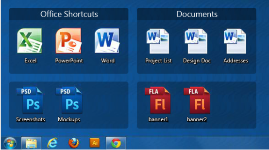 使用 Fences 自動整理后桌面瞬間就井然有序了,不同的柵欄存放不同的圖標,你還可以隨意移動和拉伸這個柵欄的尺寸。除了這個,Fences 還提供了一個有趣的功能:雙擊桌面可以隱藏/顯示所有圖標;而且在圖標歸類存放之后,你會發現這大大提高的了你的使用效率。