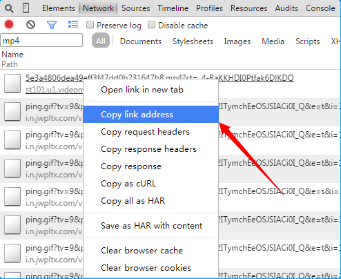 8、開始復(fù)制地址,準(zhǔn)備下載,在你找到的地址上右鍵,選擇”Copy link address”(復(fù)制鏈接地址):