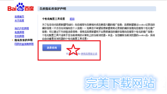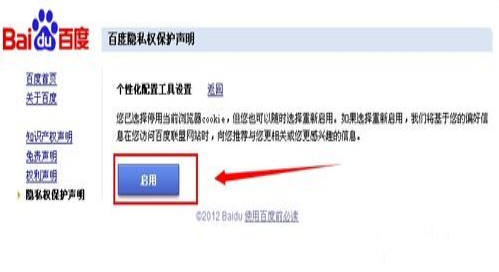 2、點開“使用百度前必讀” 選擇“隱私權保護聲明”,往下看到藍色小字“個性化工具”;