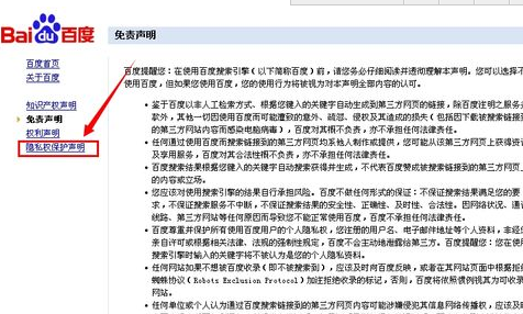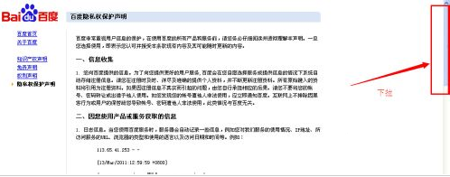 3、打開隱私權保護聲明,滾動條拉到中間部分;