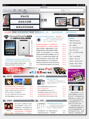 若遇到喜歡的網站,可以直接點擊屏幕上方的“+”號進入收藏頁面。點擊“添加書簽”(也可以添加到主屏幕或通過郵件發送推薦給朋友)。