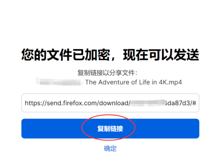 4、上傳完成后,頁面會顯示分享的鏈接,點擊【復制鏈接】則鏈接保存在了緩存中,此時可把鏈接發送給要分享的人即可。