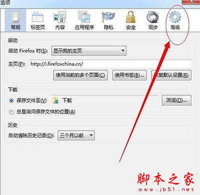 然后在選項(xiàng)對(duì)話框中點(diǎn)擊頂部最右邊的“高級(jí)”按鈕
