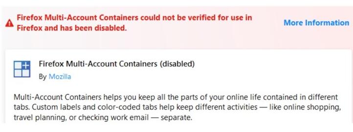 今天大量用戶報告所有Firefox插件(也稱為擴展)被錯誤禁用,Mozilla已承認其系統存在問題。該錯誤導致Firefox瀏覽器在擴展上方顯示錯誤消息“無法驗證并已禁用一個或多個已安裝的擴展”。
