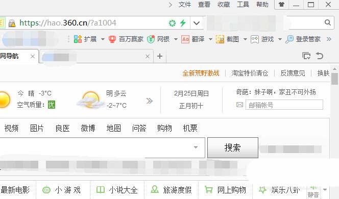 1、我們在使用360瀏覽器的時候,首先第一步就是進入到360瀏覽器的主頁,如圖所示。