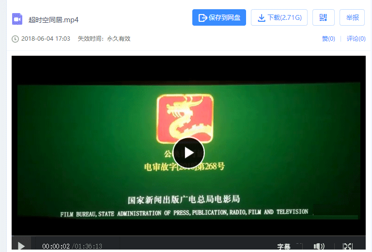 3、點(diǎn)擊“搜索列表”中的鏈接跳轉(zhuǎn)至網(wǎng)頁(yè)版度盤,若是電影、視頻類型的文件,可以查看畫質(zhì)是否高清,若是標(biāo)清或更差的視頻就可以PASS掉了,這個(gè)步驟可以確保你不會(huì)“白辛苦”的下載不滿意的結(jié)果。