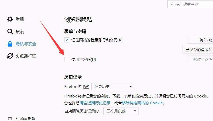 火狐瀏覽器設置選項里面有很多可選的菜單,今天我們就來看看火狐瀏覽器不使用主密碼的設置方法。
