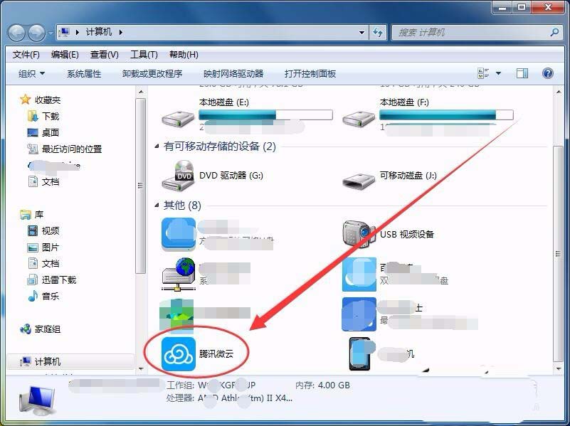 2、計算機窗口中,找到騰訊微云圖標,雙擊打開。