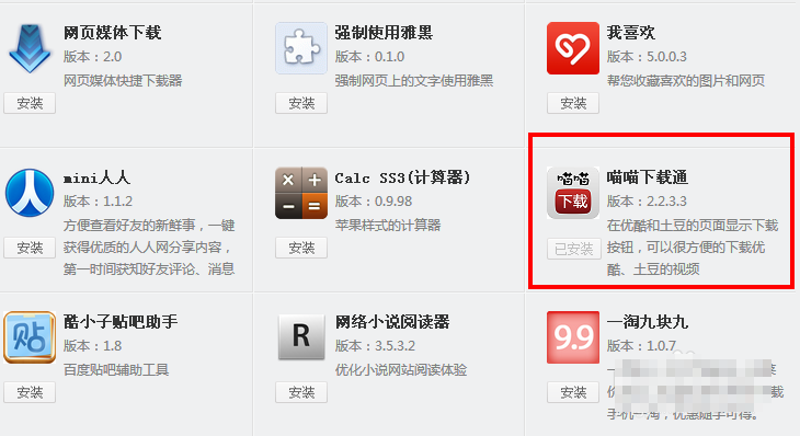 4、找到“喵喵下載通”,單擊“安裝”添加該應用。