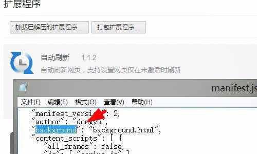 7、大家可以將記事本中的"background_page": "background.html",找到,然后將其中的‘_page’標識刪除,這樣一來就能解決這個故障了!