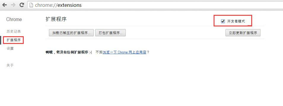 3、在彈出新頁面中,如下圖所示,選擇擴展功能,并勾選開發者模式。