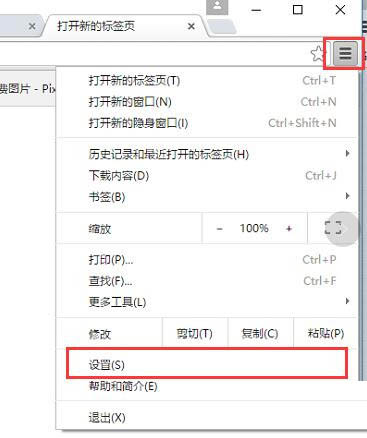 2、打開chrome瀏覽器,如下圖所示,依次點擊自定義控制菜單>>設置按鈕。