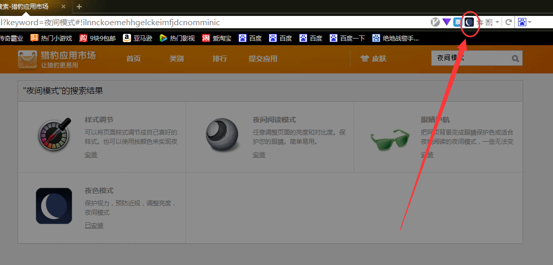 2、接著在獵豹應用市場中搜索“夜間模式”然后點擊安裝即可;