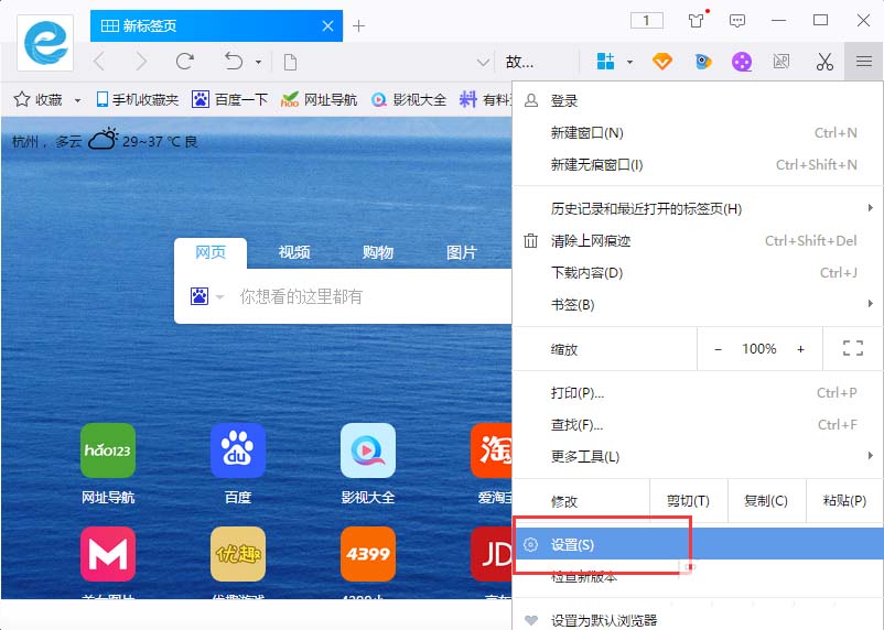 4、點擊設置選項后,這個時候會跳轉到瀏覽器設置頁面。如圖所示;