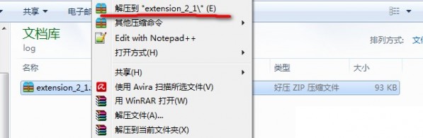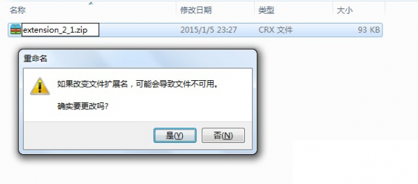 1.把下載后的.crx擴展名的離線Chrome插件的文件擴展名改成.zip或者.rar(如果看不到Chrome插件的擴展名請百度搜索相關操作系統的設置方法,這里不再敘述),如圖所示: