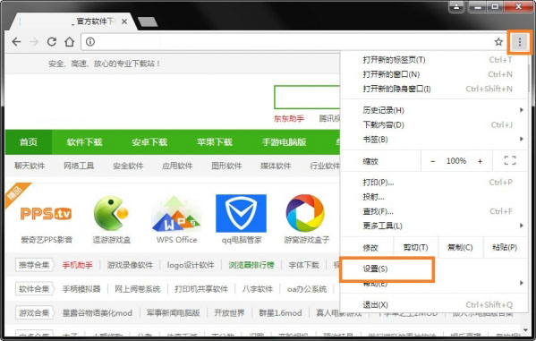 1.首先用戶點擊谷歌瀏覽器右上角的自定義及控制按鈕,在下拉框中選擇設(shè)置。