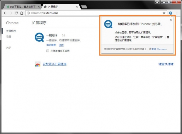 5.用戶這時候只需要點擊添加按鈕就可以把該離線Chrome插件安裝到谷歌瀏覽器中去,安裝成功以后該插件會立即顯示在瀏覽器右上角(如果有插件按鈕的話),如果沒有插件按鈕的話,用戶還可以通過Chrome擴(kuò)展管理器找到已經(jīng)安裝的插件。