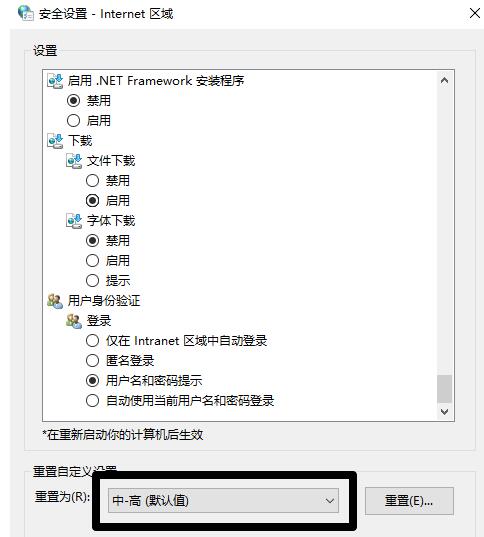 3、最下方【重置自定義級(jí)別】,點(diǎn)擊打開界面下方的下拉列表,就可以對(duì)安全級(jí)別進(jìn)行各種設(shè)置了