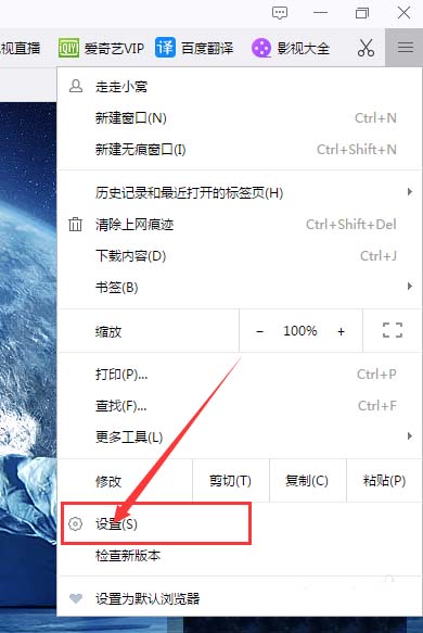 1、打開千影瀏覽器,點擊右上角的自定義菜單,如下圖片中所示