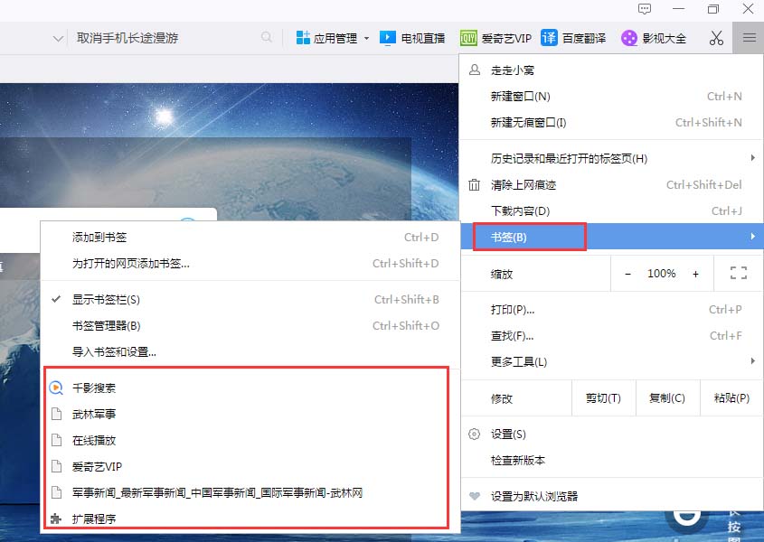 介紹千影瀏覽器如何顯示收藏夾內容,以供參考