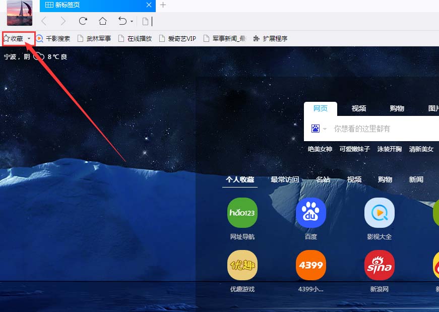2、點擊千影瀏覽器界面左上角的收藏按鈕。