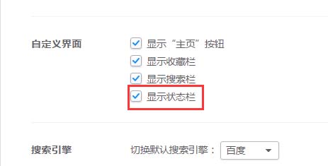 6、在自定義界面中的【顯示狀態欄】前面打上勾