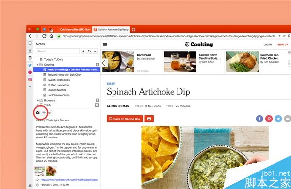 極客瀏覽器有兩個特殊的功能,第一、用戶可以直接在瀏覽器“筆記”面板中添加筆記和截圖,筆記功能會自動記錄相關的網站,保存屏幕截圖,還可以為它添加標簽以便整理和以后查找,對于經常收集內容的用戶來說非常實用。