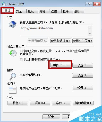 進入了internet屬性窗口選項。這時候點擊“刪除”按鈕。
