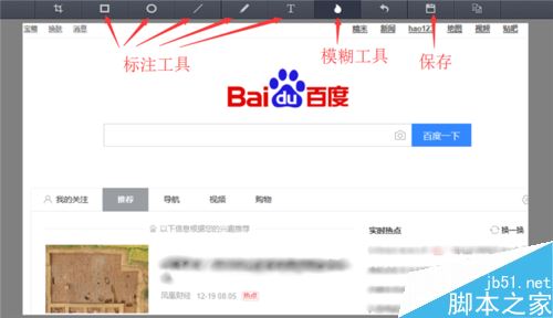 截圖完成后,可以使用最上面的矩形、圓形區域、模糊工具、直線、鉛筆等工具進行圈點批注,最后點擊保存即可。