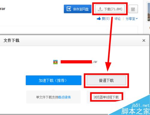 然后點擊下載,在彈出的的對話框里面,有一個加速下載,這個是要用到百度云的客戶端的,另外一個就是用瀏覽器下載。