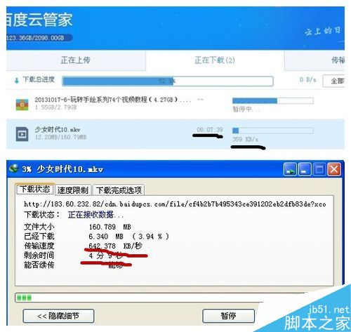 我們來看一下它的下載速度。為了看看他的效果,我們把它和百度云客戶端的下載速度進行一個對比。