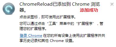 瀏覽器會自動下載并安裝,稍等片刻,出現如下圖所示信息,表明ChromeReloader插件安裝成功。