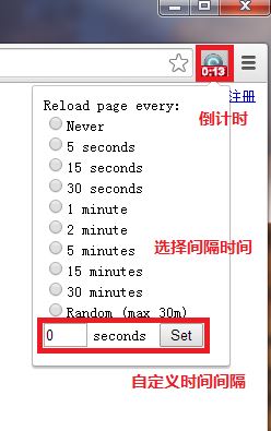 至此就可以在任意網頁設置定時刷新了,有從5秒到30分鐘不等的間隔時間供選擇,當然,大家也可以根據需要設置任意的間隔時間。