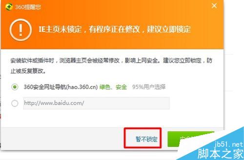 如果您的電腦安裝了安全衛(wèi)士或電腦管家等軟件,可能會彈出警示框,選擇“暫不鎖定”,如下圖,這樣就保存了剛才您的手動設(shè)置。