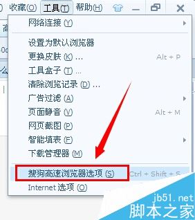 再打開工具里的“搜狗高速瀏覽器選項(xiàng)”: