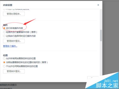6、打開內(nèi)容設(shè)置后,找到插件,并設(shè)置成運行所有插件就大功告成了