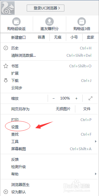 3、找到設(shè)置并打開
