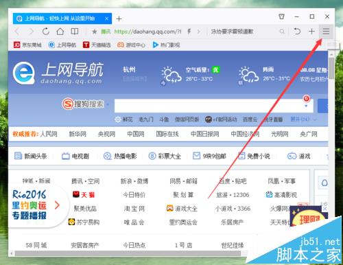 2、在打開的瀏覽器界面,點擊右上角的“三橫”菜單選項。如圖所示;