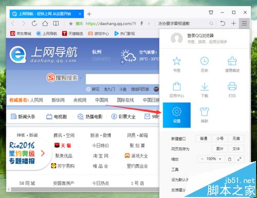 4、點擊“設置”命令選項后,這個時候會彈出瀏覽器“設置”對話窗口。如圖所示;
