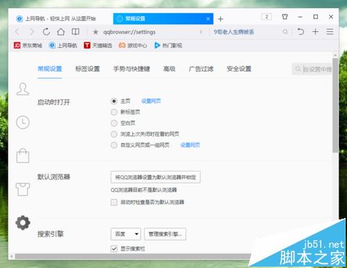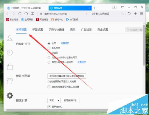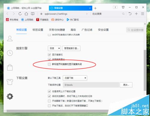 6、在“常規設置”選項卡中,找到“搜索引擎”下的“新標簽頁和搜索欄顯示搜索熱詞”選項,并將其取消勾選即可。如圖所示;