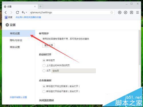 5、在“設(shè)置”對話框中、選擇左側(cè)窗格的“常規(guī)設(shè)置”選項(xiàng)卡。如圖所示;
