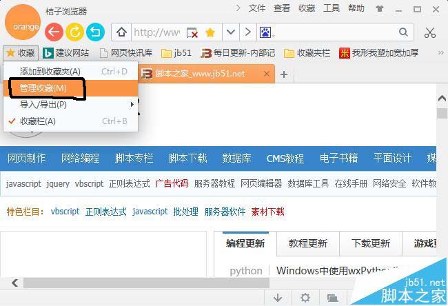 以上就是桔子瀏覽器收藏夾的使用方法,不會的朋友可以留言,我們會繼續幫您解答,喜歡的朋友轉載請注明文章來源武林網,謝謝支持。