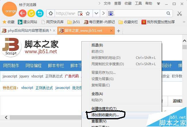 3、點擊以后提示收藏到哪個文件夾中,小編就收藏到jb51文件夾中,收藏好了以后,點擊jb51文件夾就可以看到自己收藏的網頁,如下圖所示。