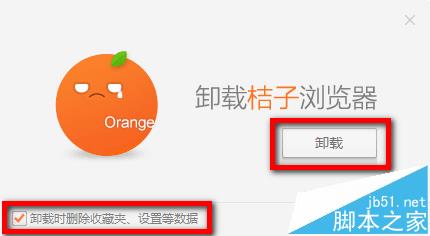 4、此時選擇卸載時刪除收藏夾、設置數據,然后點擊卸載,最后桔子瀏覽器就卸載成功了。