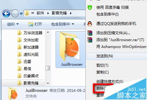2、找到“juziBrowser”文件夾將其刪除,然后適用電腦管家清理一下注冊表就好了。